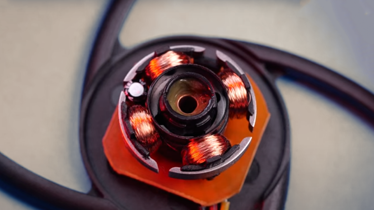 - После снятия пластикового кожуха и защитной сетки открывается доступ к мотору. Мотор отсоединяется от поворотного механизма и проводов.