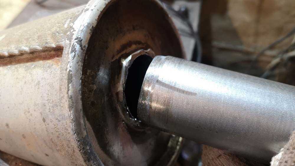 Как и любая деталь машины, устройство подвергается износу, особенно при контакте с высокими температурами. Если у глушителя появилось большое прогоревшее отверстие в середине — можно ли ехать? Нет. При первых признаках такой неполадки следует обратиться к мастеру. Глушитель демонтируется, затем поврежденный участок вырезается с помощью болгарки.