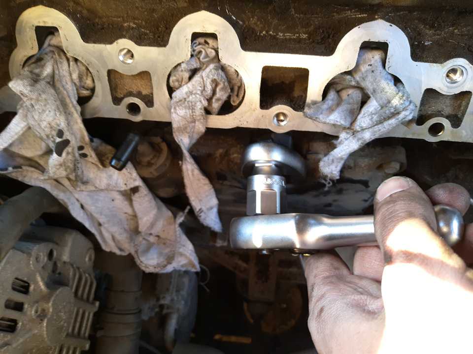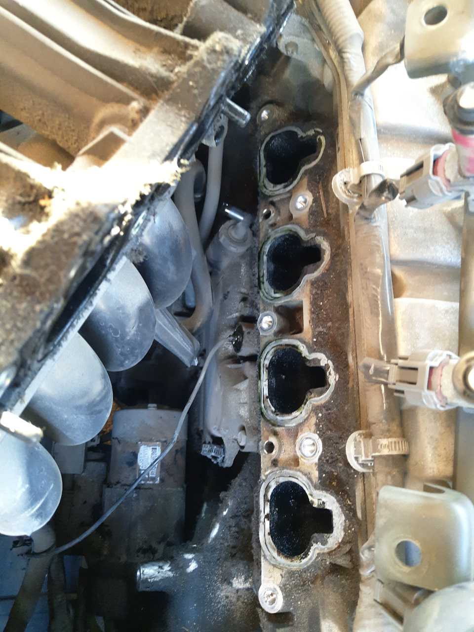 5. Замена прокладок впускного коллектора.Закрываем отверстия в блоке ветошью и тщательно очищаем поверхность от нагара и старых прокладок, дабы небыло подсоса воздуха.