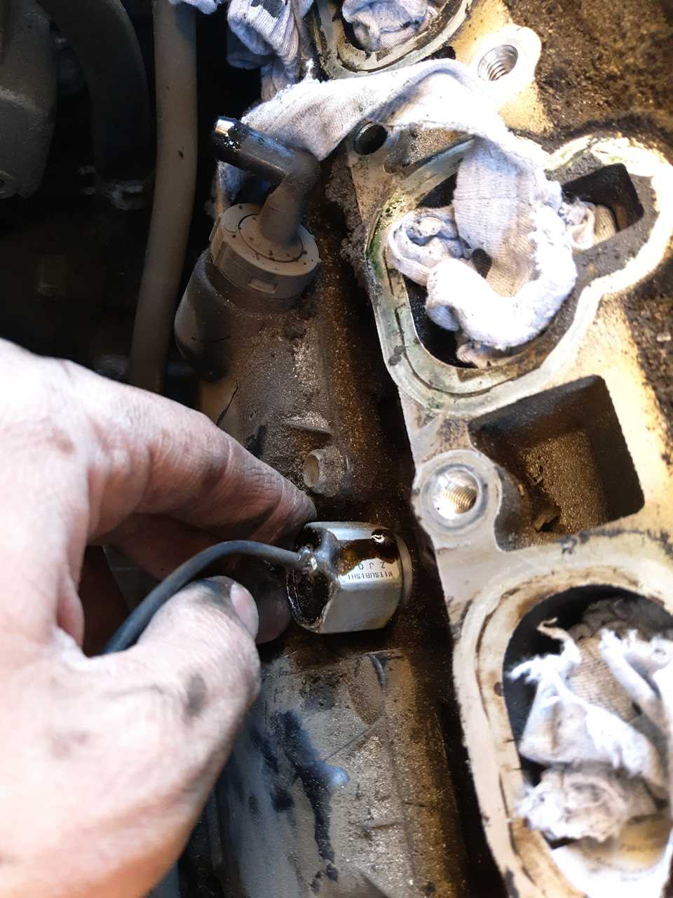 Аккуратно от руки закручиваем новый датчик и доворачиваем ключом. Момент затяжки 12-15 Н*м.