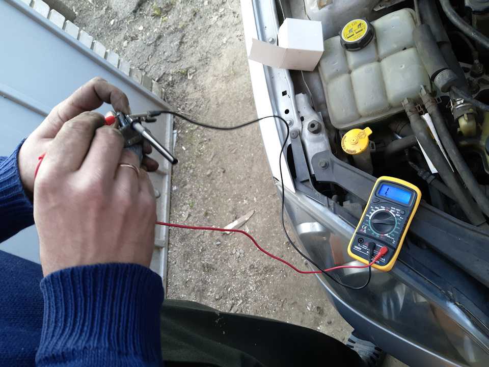 Минусовой щуп измерительного прибора соедините с корпусом датчика детонации Мазда 3, а плюсовой с контактной клеммой. Постучите по корпусу детали, молоточком, гаечным ключом или другим подручным предметом, чтобы сымитировать вибрацию