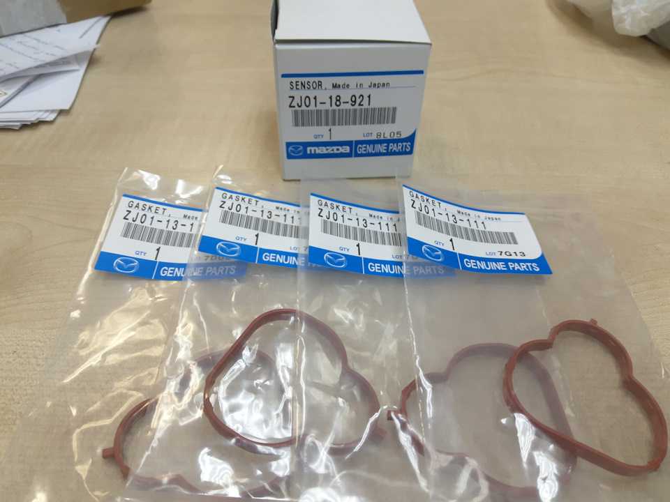 Для замены датчика придётся демонтировать систему впуска, а значит понадобятся новые прокладки впускного коллектора Мазда 3. Ставить при сборке обратно старые в попытке сэкономить нет смысла. Детали уже деформировались, а значит будут пропускать в систему лишний воздух.