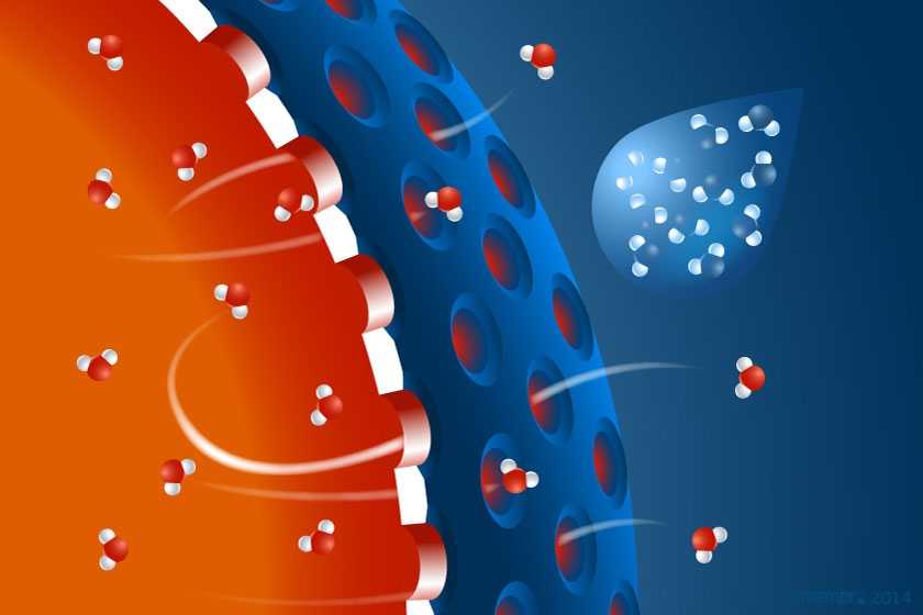 Избирательная транспортировка влаги поровой мембраной происходит благодаря структурным особенностям воды.