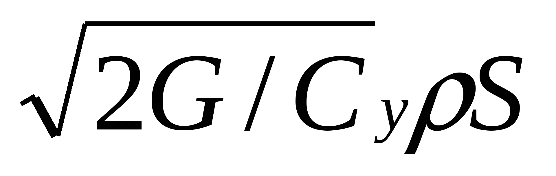 Рисунок7.1 Схема сил при подъемеРXG2YG1P = X+G2=X+G ∙ sin.У=G cos — условие прямолинейности движения;P= X =G sin— условие равномерности движения.потребная сила тяги при подъеме большеG2 избыткатягиХарактеристики самолета при подъемеСкорость, потребная для подъема. Скоростью, потребной для подъема самолета Vпод называется скорость, необходимая для создания подъемной силы, уравновешивающей составляющую веса, перпендикулярную траектории подъема на данном угле атаки.У=Gcos= Cy