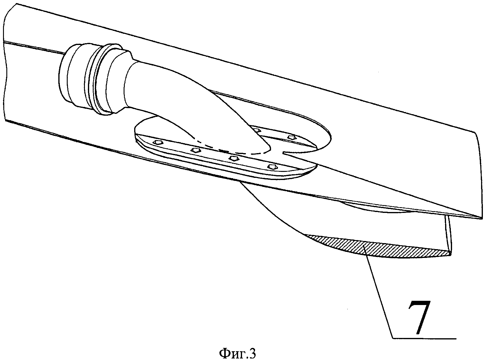 Система суфлирования турбореактивного двигателя включает в себя трубопровод суфлирования 1, соединенный с трубой суфлирования 2, установленной на сопло 3. Труба суфлирования 2 крепится к соплу 3 через фланец 4. С помощью наконечника 5 труба 2 соединяется с трубопроводом 1 системы суфлирования. Выходной конец 6 патрубка трубы суфлирования 2 выполнен изогнутой формы с образованием емкости 7 для конденсата масла с выходным сечением 8, перпендикулярным оси 9 трубы 2.