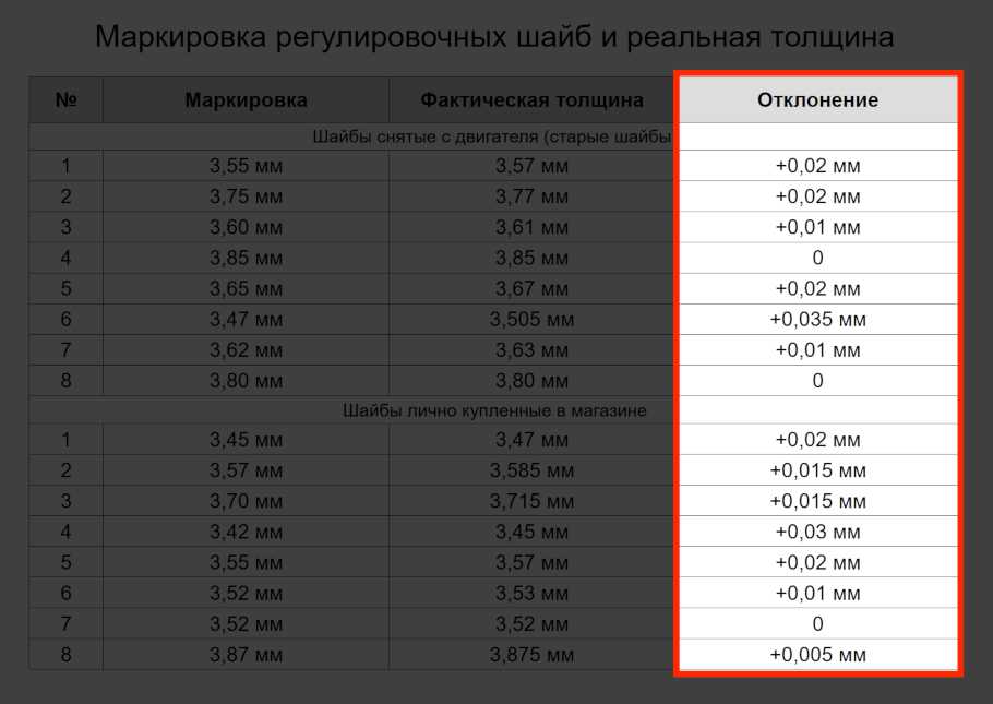 В последней колонке «Отклонение» я зафиксировал отклонение регулировочной шайбы от номинального размера или так называемую погрешность.