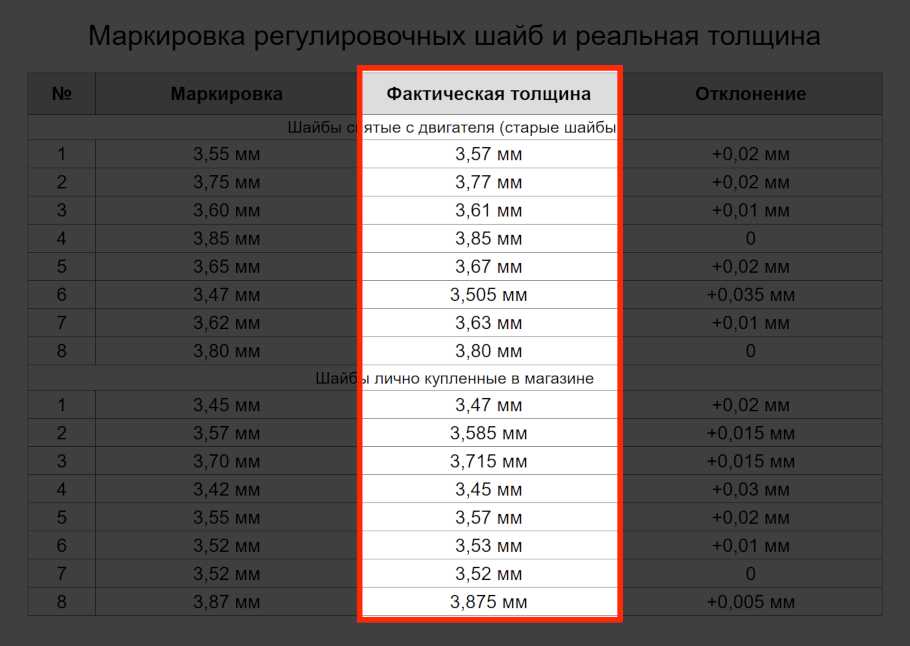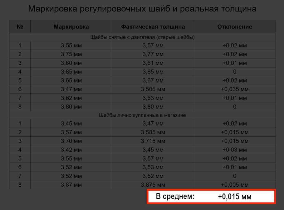 Почему можно сделать вывод, что допуск ± 5 соток, обозначенный заводом изготовителем, обусловлен погрешностью в реальной толщине регулировочных шайб? Если обратить внимание на таблицу, то все станет ясно