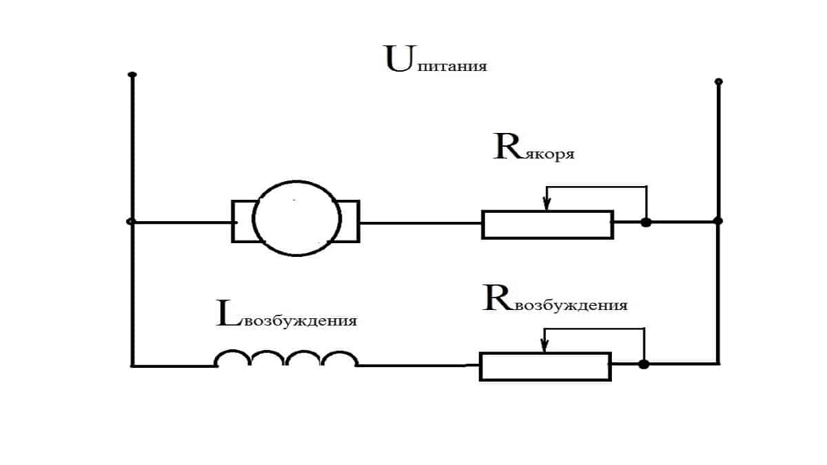 Рис. 2. Схема двигателя постоянного тока с параллельным возбуждением