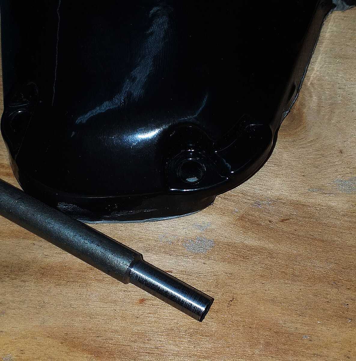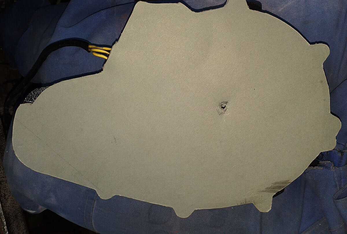 - Резиновая прокладка для патрубка при необходимости может быть изготовлена из плотной резины подходящей толщины. Отверстия под болты в резиновой прокладке делают с помощью дрели и спиральных свёрл, но прокладку необходимо надёжно зафиксировать между двух деревянных досок;