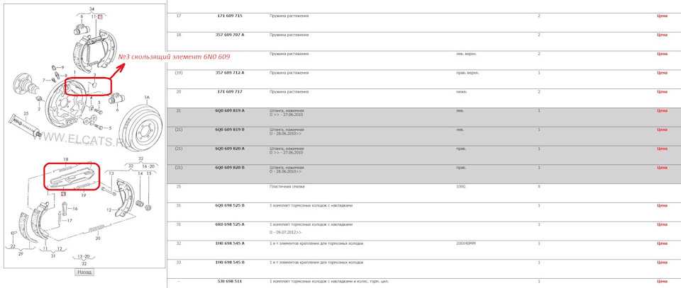 Снова здравствуйте!Пару дней назад заменили с отцом задние тормозули.После покупки авто, было выявлено, что что то держит за ж*пу, в автосервисе сказали: «Может троса закисли, а может цилиндры, надо смотреть и менять».Подумал, подумал и решил все сразу заказать, чтобы десять раз не ползать туда, в общем, купил:— Колодки Bosch 0986487270, купил такие потому что были в наличии.— Цилиндры Bosch 0986487270, они из обычного металла, в оригинале стоят, видимо, алюминиевые, по весу намного легче, чем бош.— Ремкомплект Bosch 1987475110— Трос ручника TRW/Lucas GCH2649Особо не фоткал, так как ангар не наш и нужно было сделать все бегом бегом.При таком роде ремонта, рекомендую купить 3-4 скользящих элемента, по которым ходят колодки (6N0 609 589), (на рис №3), всего на одном колесе их 6 шт; Штангу нажимную (на рис №21), пройдя 120т.км имеет выработку.