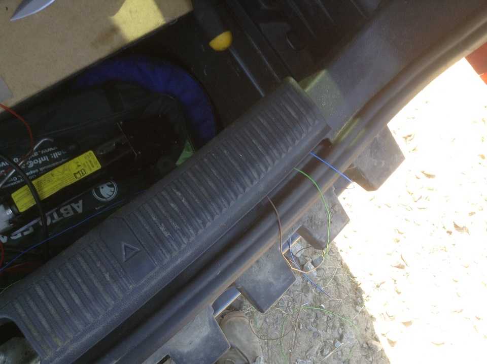 обшивку багажника курочить я не стал, провода удалость протащить и так.