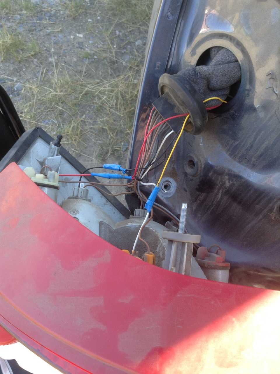 Вытаскиваем провода через резиновые заглушки в задние фары и врезаемся в штатную проводку, используя инструкцию, чтобы не перепутать провода
