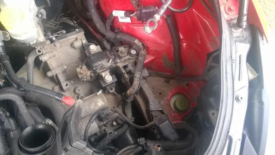 3. Скручиваем две гайки с блока вентиляторов радиатора (находится прямо под аккумулятором), снимать и отсоединять ничего не нужно, это делается для возможности скрутить один из 3 болтов крепления кронштейна ЭГУРа.