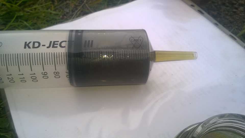 Откачиваем всю возможную жижу. Я это сделал с помощью большого шприца и шланга. Примерно 500мл откачал.