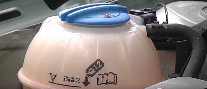 Крышка горлышка снизу закрывается, а сверху открывается выводной механизм. В резервный бачок антифриз заливается до достижения уровня максимум. Между поверхностью крышки и поверхностью жидкости не должно быть более 3 мм, иначе это расстояние поспособствует образованию воздуха в системе, что недопустимо. Литраж антифриза при заливке зависит от производителя и от объема внутреннего сгорания.