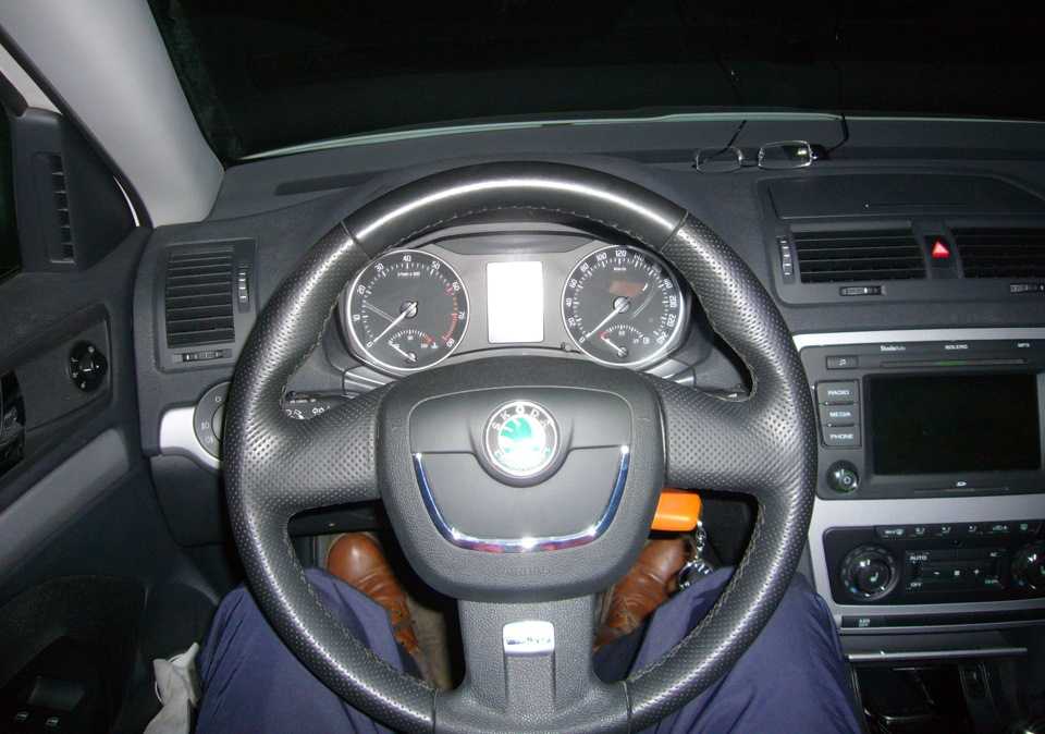 1. Снимаем минусовую клемму аккумулятора (чтобы не стрельнула подушка). Можно конечно вынуть предохранитель системы Airbag (для Октавии A5 это пред N3), но с клеммой как-то надёжнее.2. Открываем фиксатор регулировки положения рулевой колонки и выдвигаем руль максимально на себя и опускаем до упора вниз. Это позволит обеспечить больше свободного места, чтобы подлезть к защелкам подушки.3. Вставляем ключ, и поворачиваем его на 90 градусов, чтобы была возможность добраться до отверстий, через которые отщёлкивается подушка