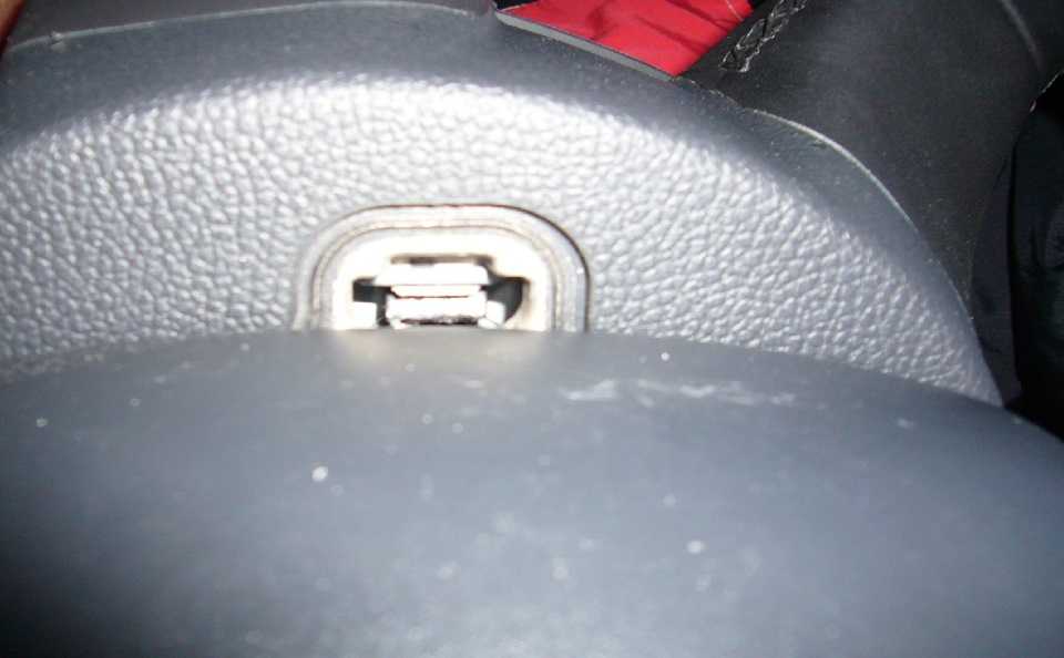 Это сложно описать, но главное ковырять там, где я указал на фото. =) Один раз снимете и все станет понятно…4. После того, как отщелкнули одну сторону, поворачивайте руль в обратную сторону и снимайте подушку со второго крепления.5. Снимаем разъем подушки безопасности. Для этого сначала надо выдвинуть на себя белый фиксатор разъема (на боковой стенке разъема), а затем нажав на него как на рычаг, снять сам разъем.