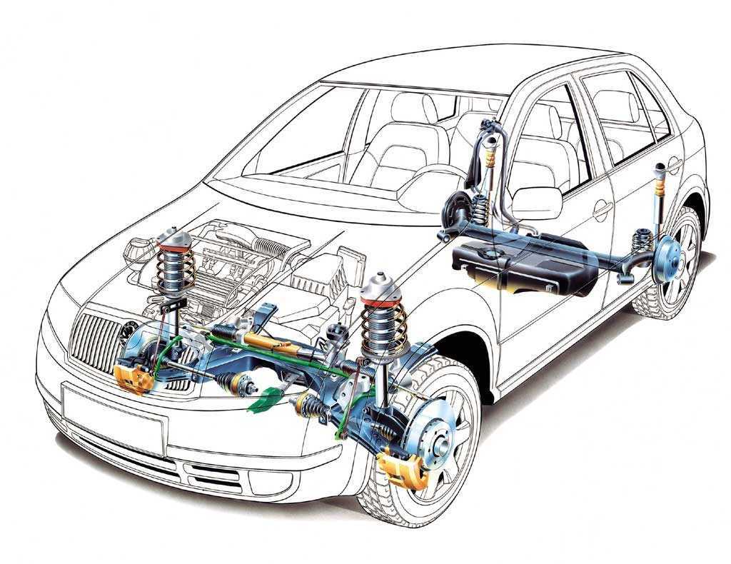 Начнем с передка. Схема передней ходовой части Skoda Octavia А5 и А7 состоит из двух поперечных рычагов треугольной формы, соединяет эту конструкцию стойка в сборе с амортизатором. Такая компоновка называется McPherson и применяется на большинстве переднеприводных автомобилей. Ремонт и обслуживание данной системы вполне можно осуществить своими руками, не прибегая к дорогостоящему автосервису.