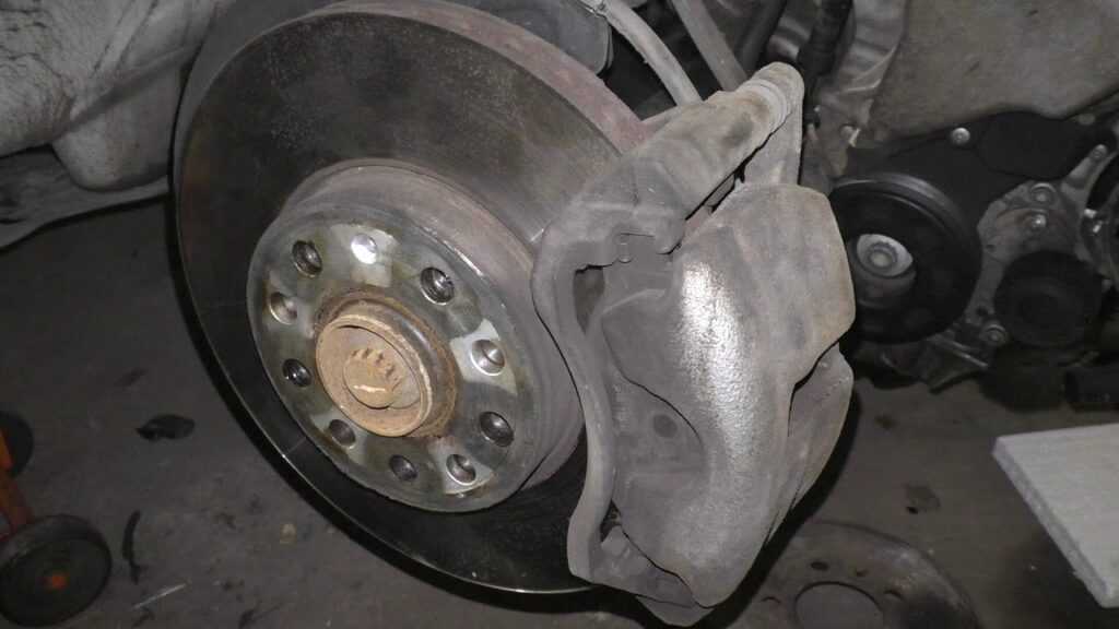 - Вывернуть винт, убрать крепление между ступицей и тормозным диском.