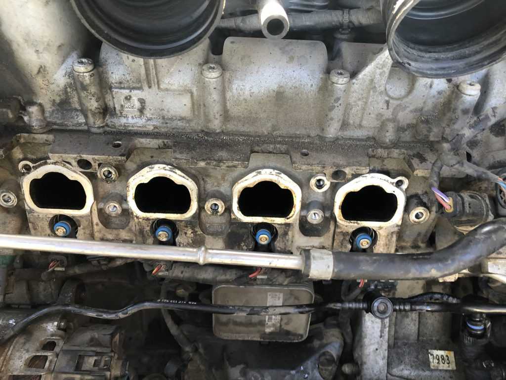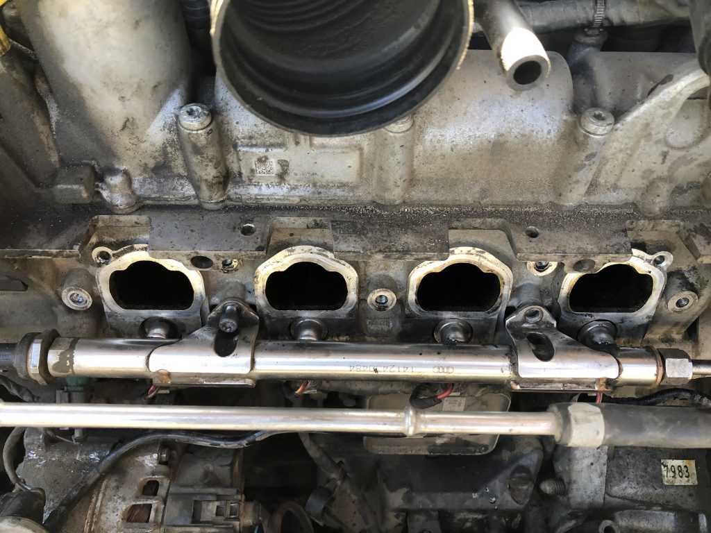 Далее снимаем рампу и извлекаем форсунки. 3 штуки вышли с рампой, а одна осталась в ГБЦ. Съёмник в помощь…