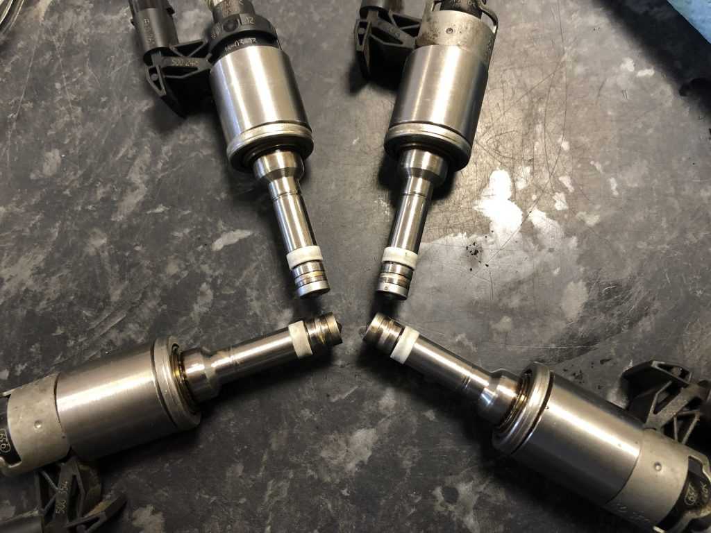 Как выяснилось, ранее уже снимали форсунки и меняли их местами, но ремкомплекты не меняли. Это серьёзная ошибка! Уплотнительные кольца одноразовые и повторно их ставить нельзя, особенно это касается тефлоновых колец. Многие сервисы не могут их заменить по причине отсутствия специального инструмента. Про это мы снимали видео ролик