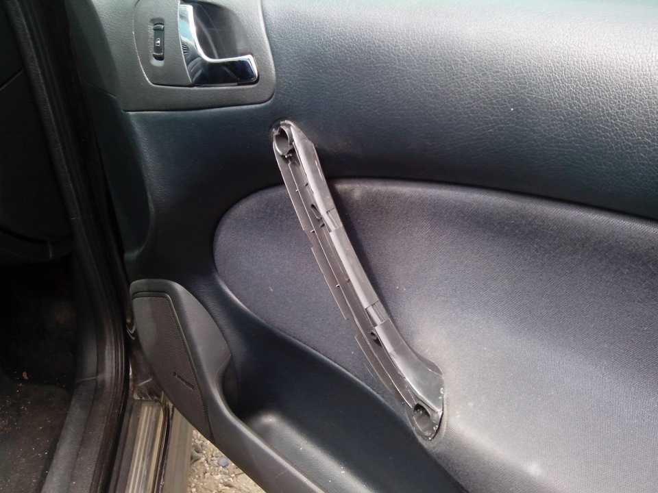 - Для начала необходимо снять дверную обшивку Skoda Octavia, для этого нужно демонтировать рукоятку, потянув ее наружу.