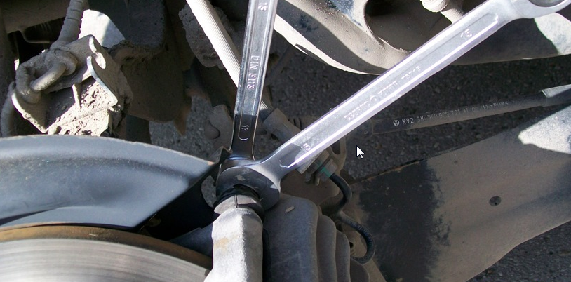 1) Прежде, чем поднять машину, не забудьте ослабить болты крепления колёс на задней оси, так как, если машину поднять и этого не сделать, то колёса будут крутиться вместе с ключом, а болт даже не подумает открутиться. Если у вас на колёсных болтах установлены пластиковые колпачки, то их нужно снять специальным съёмником из штатного набора инструментов: