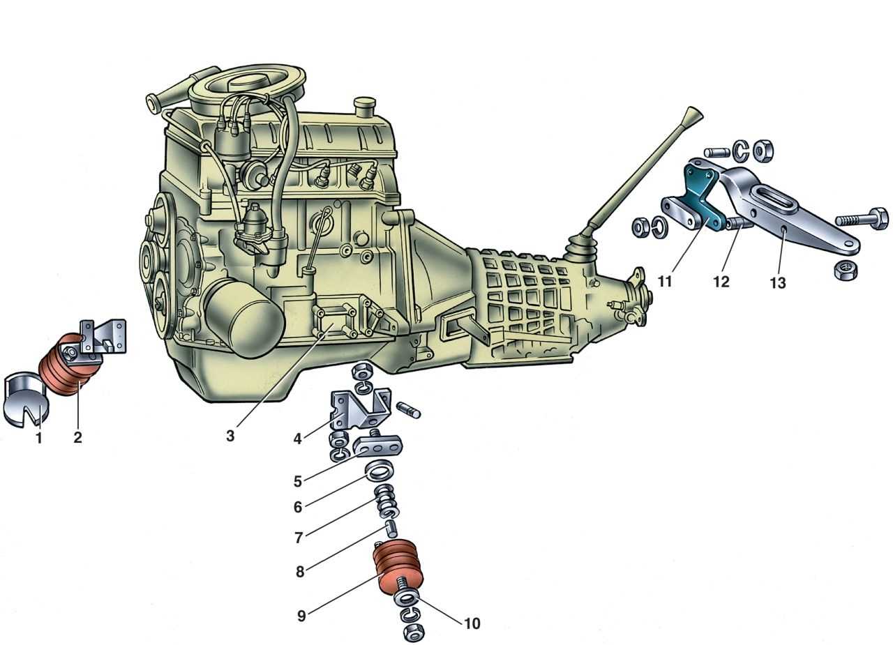 - Затем необходимо снять силовой агрегат с трансмиссии и открепить болты подушек.