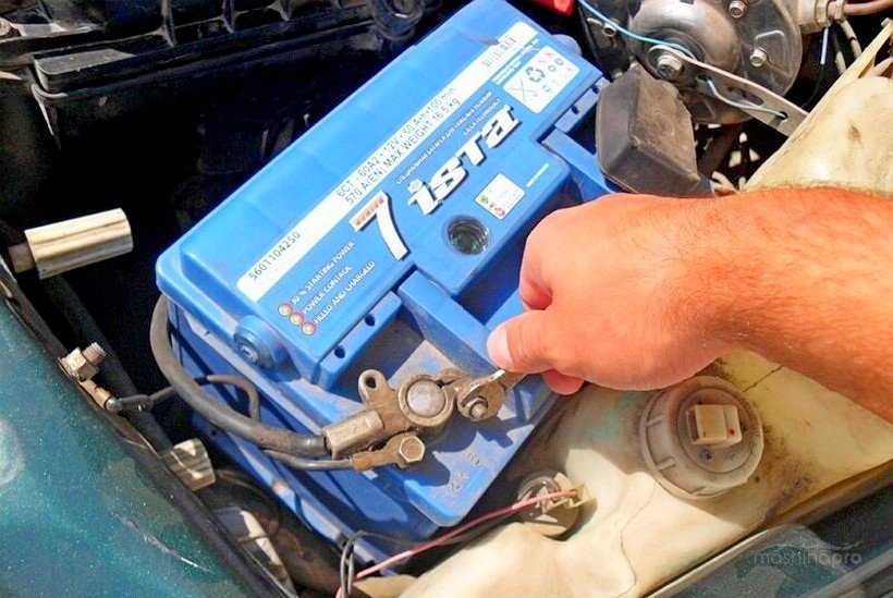 - Убедиться, что клеммы чистые, и в первую очередь снять соединение на массу.