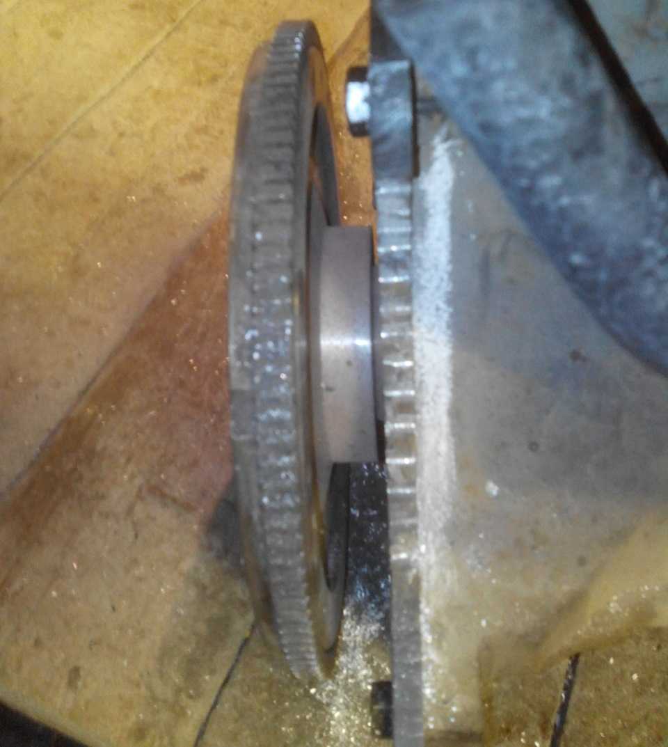 После этого ставим наш коленчатый вал обратно. Заодно можете сразу прихватить и маховик что бы проточить его под классический венец для запрессовки. С токарными работами все, теперь нужно переставить кронштейны с нашего старого мотора, на блоке от восьмерки с боку имеются специальные отверстия. Затем понадобится не много замять моторный щит так же как и в случае с 16 клапанным мотором. Ставим на двигатель маховик с уже запрессованным на него венцом, и крепим к нему классическую корзину сцепления.