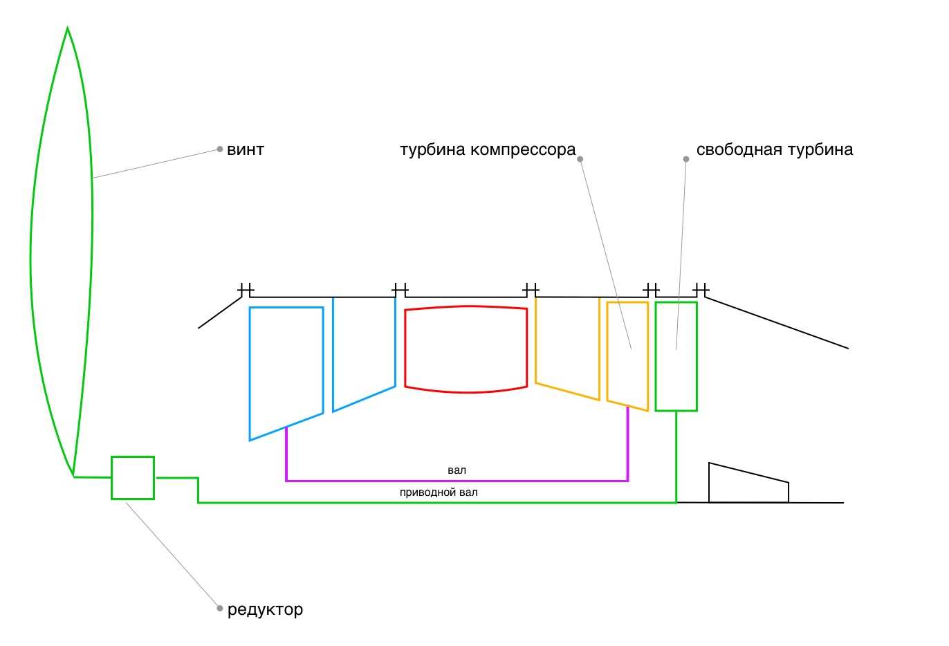 На этом про турбовинтовые двигатели можно заканчивать. Мы потихоньку подошли к понятию турбовального двигателя.