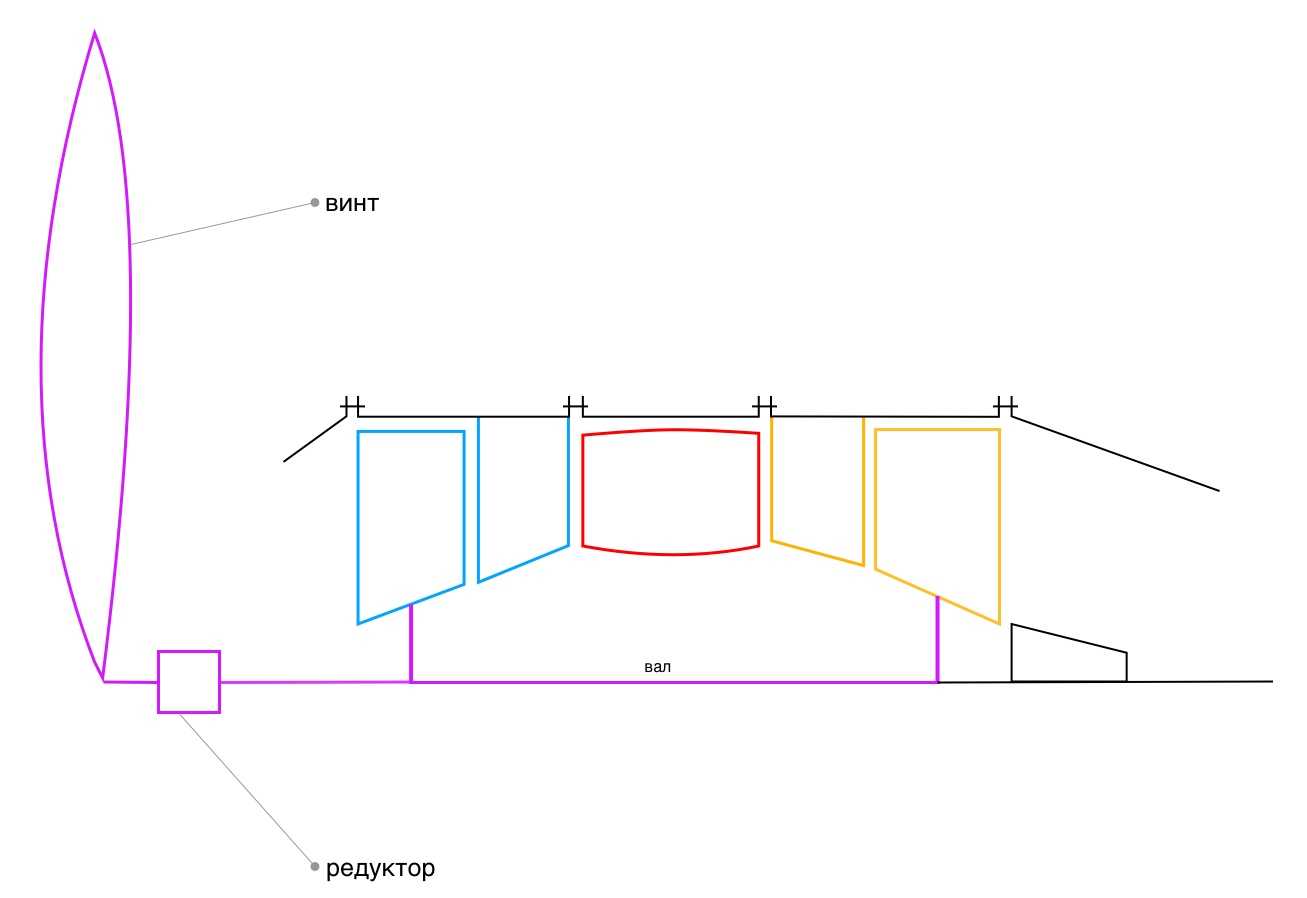 Две основные схемы устройства ТВаД с описание расположенных механизмов. Картинки кликабельны.