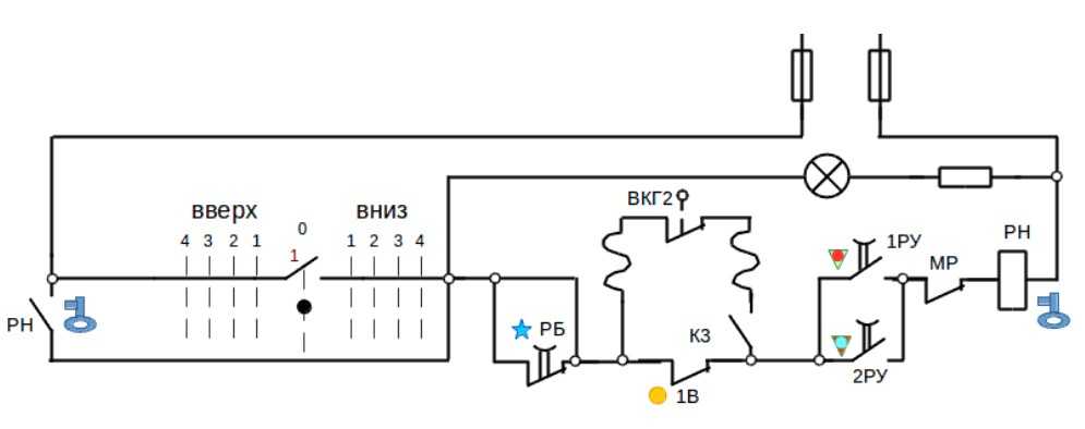 Отметим, что вышеупомянутое реле относится больше к защитным системам, применяемым в связи с технологическими особенностями кранов с траверсами. С их помощью груз можно поднимать вплоть до момента срабатывания конечного выключателя. Лампочка, находящаяся на схеме, сигнализирует оператору о нахождении контроллера в нулевом положении либо об активации контактора РН.