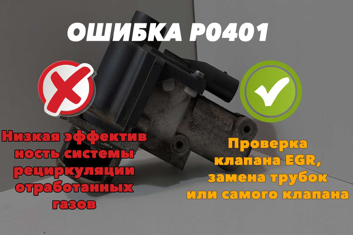 Если клапан загрязнен или забит, то он не сможет своевременно открываться и закрываться. Это приведет к неустойчивой работе двигателя, перерасходу топлива и лишним не самым приятным для водителя последствий эксплуатации автомобиля. В случае появления ошибки P0401 первым делом необходимо провести визуальный