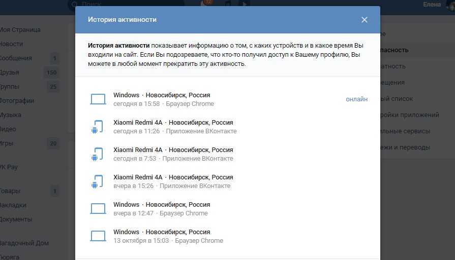 историю активности». Всплывшее окно покажет историю посещений сайта и IP, с