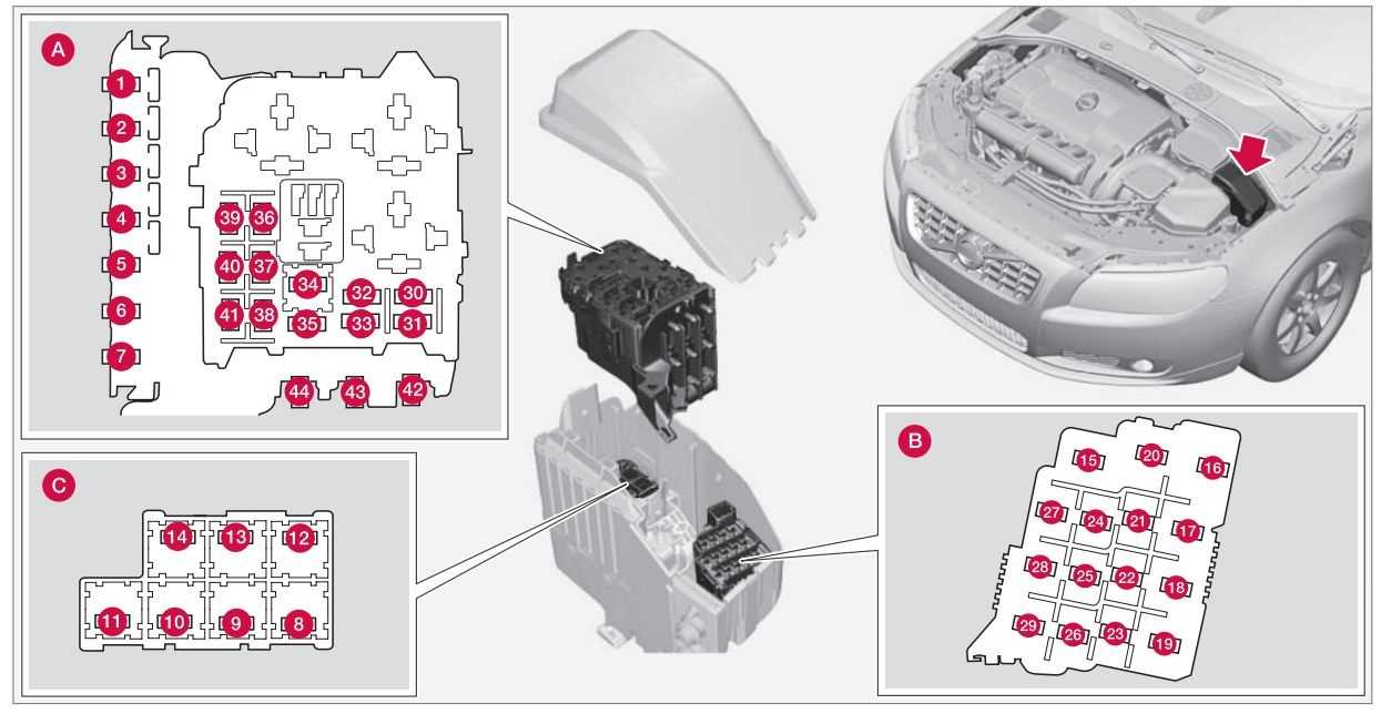 Volvo XC70 — предохранители — моторный отсек