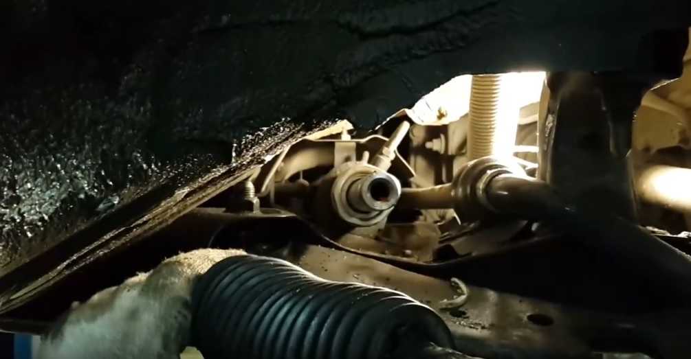 - Надежно зафиксируйте корпус рейки и открутите рулевые тяги (на резьбовой муфте есть проточки для рожкового ключа).