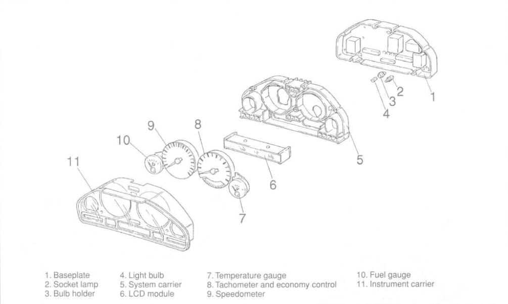 Большинство ламп – мощностью 1,2 W. Они используются для индикации различных состояний панели приборов. Шесть ламп по 1,5 W используются для освещения жидкокристаллического модуля в нижней части панели приборов. Еще три лампочки по 3 W используются непосредственно для подсветки.