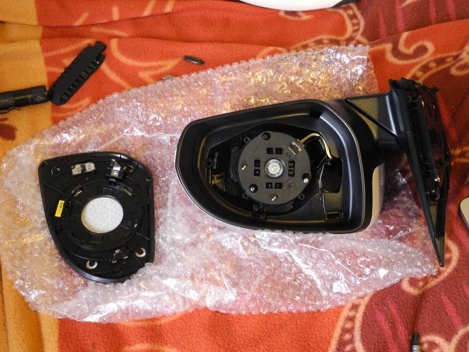 Итак, зеркало правое снято, по аналогичному принципу достается и разбирается левое. Затем вы сможете осуществлять разные манипуляции с элементами.