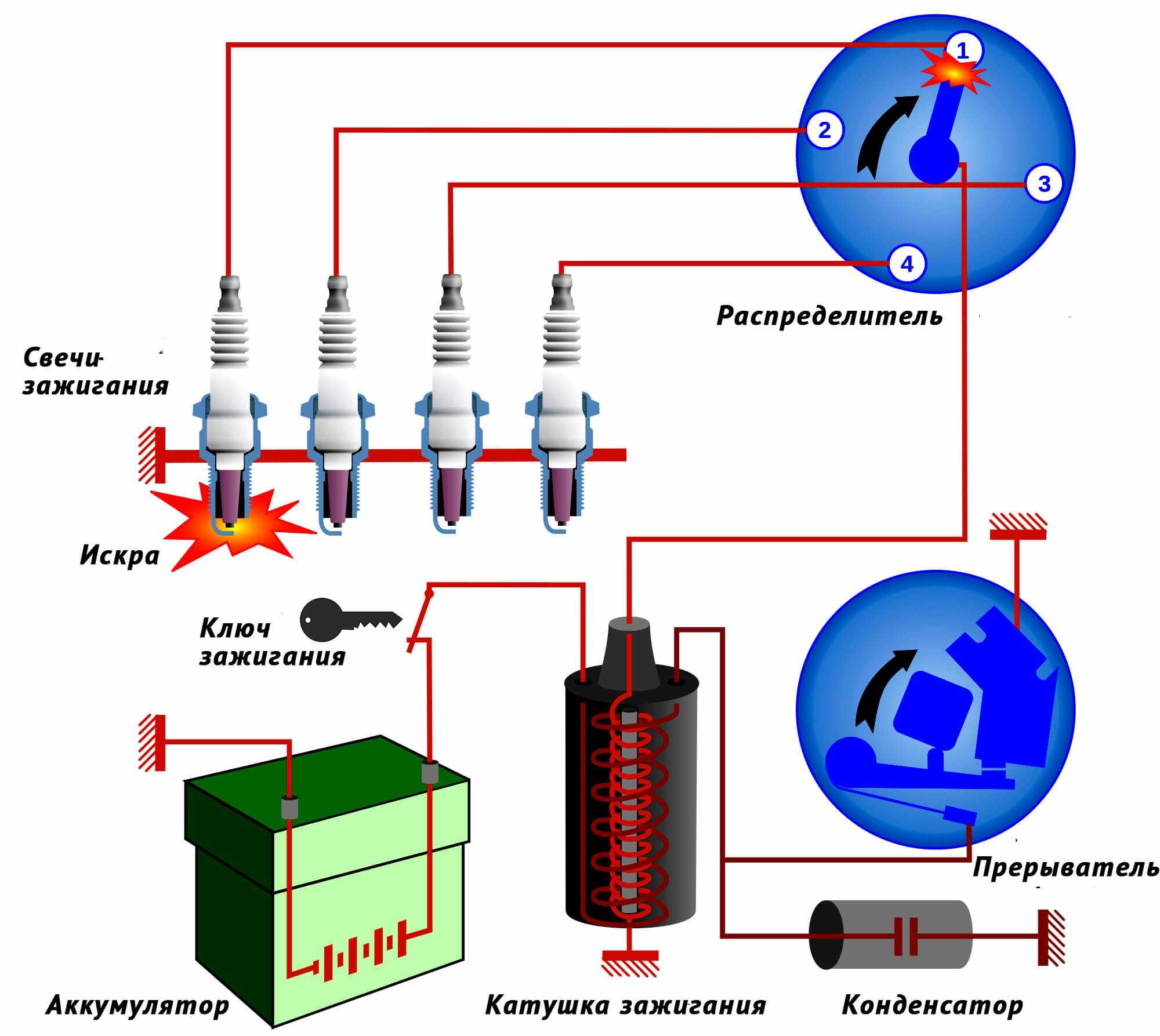 - Обрыв проводка, соединяющего подвижный диск прерывателя с корпусом.