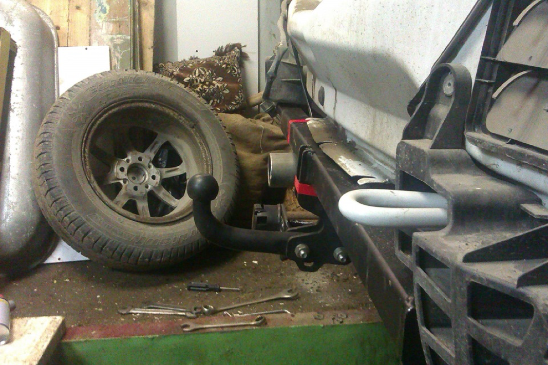 После установки производиться сборка в обратном порядке. Бампер устанавливается в специальные направляющие, после чего фиксируется клипсами и саморезами. После этого укладываем на место запаску, монтируем колеса.