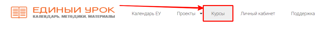 В верхней строке личного кабинета перейдите в раздел “Курсы”.