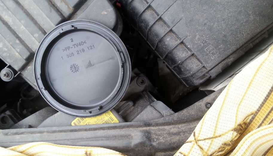 1. Первым делом открываем капот и откручиваем отмеченную на фото белую пластиковую защелку.